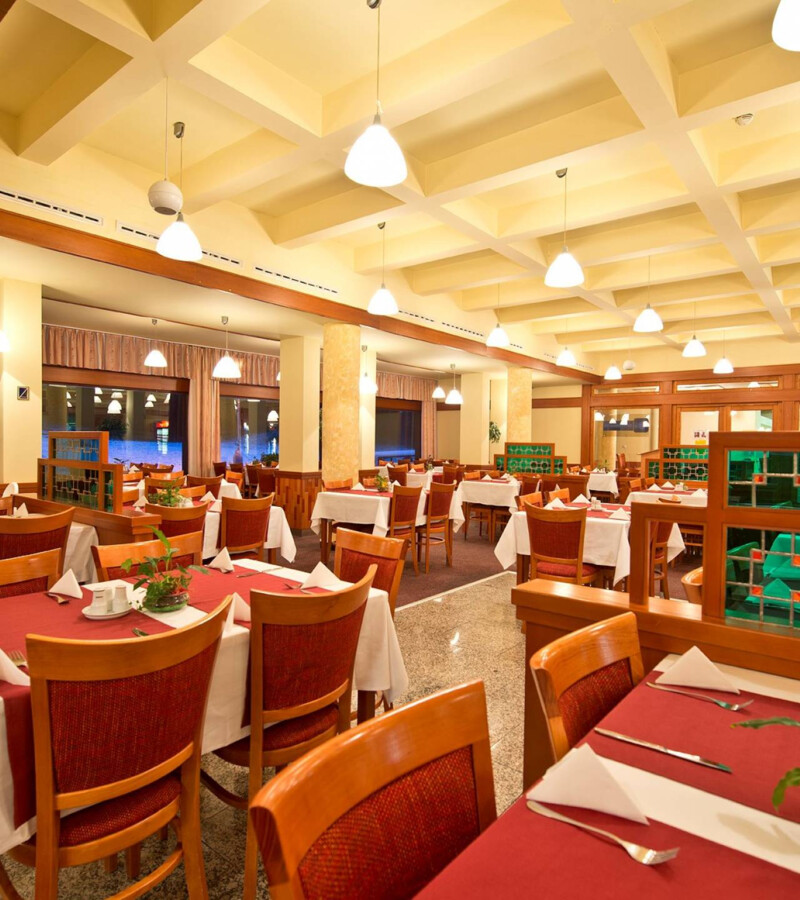 Wyżywienie: Restauracja w hotelu serwuje śniadania z ciepłym i zimnym bufetem, natomiast obiadokolacje obejmują dania do wyboru, w tym posiłek wegetariański. W ciągu dnia hotel zaprasza do baru kawowego, gdzie serwowane są również różne przekąski.