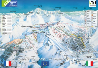 Po włoskiej stronie dostępne są zarówno krótkie zjazdy z szybkimi odcinkami, jak i długie trasy, w tym 11-kilometrowa czerwona San Bernardo z różnicą poziomów dochodzącą do 1100 m. W ofercie ośrodka jest też szereg atrakcji zimowych, którymi narciarze mogą wypełnić czas poza zjazdami. Nartostrady po stronie francuskiej znajdują się w większości na południowych stokach i należą do bardziej stromych. Wyczynowcy znajdą tutaj snowparki, a rodziny z dziećmi strefy do nauki czy mini snow park “Lièvre Blanc”.