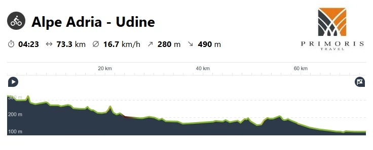 Kolejnego dnia wyprawy dotrzemy do jednego z największych i najpiękniejszych miast regionu Friuli – Wenecji Julijskiej, czyli do Udine. Ten dzień będzie niezwykle przyjemny, krajobraz wokół stanie się łagodny, trasa będzie wiodła wśród winnic i pól uprawnych, a sama droga będzie znacznie łatwiejsza.