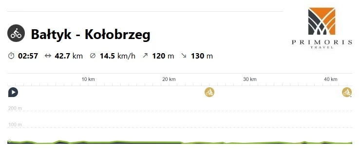 Dzisiejszy, niezbyt długi odcinek prowadzi po praktycznie całkowicie płaskim terenie. Trasa wytyczona została w większości wzdłuż polskiego wybrzeża, przez co na pewno nie zabraknie przerw na piaszczystych, nadbałtyckich plażach. Nim dotrzemy do Kołobrzegu odwiedzimy również mniejsze nadmorskie kurorty jak Mrzeżyno czy Dźwirzyno, które co roku odwiedza rzesza turystów, głównie rodzin z dziećmi.