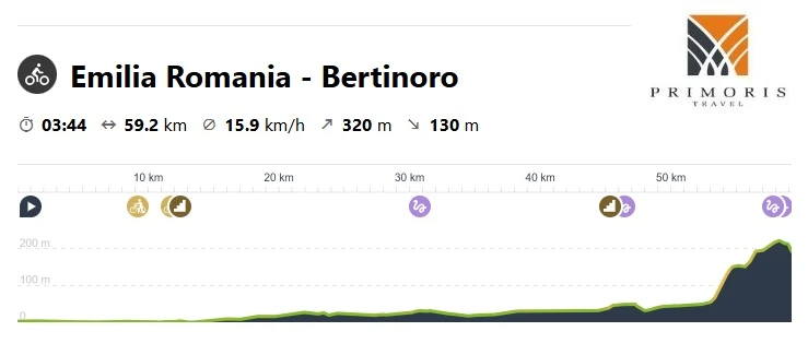 Dzisiaj wybierzemy się do miejscowości Cesena oraz Bertinoro. Trasa nie będzie zbyt wymagająca, poza podjazdem do samego Bertinoro. Zwieńczeniem dnia będzie możliwość degustacji lokalnego wina.