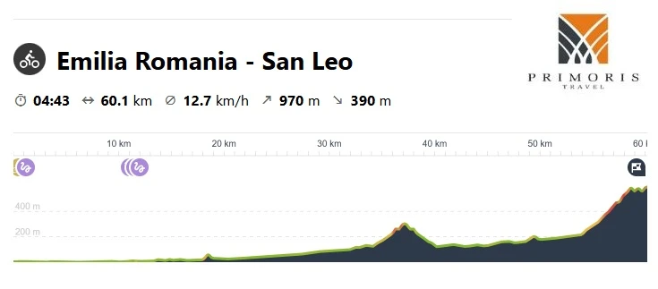 Przed nami kolejny dzień pełen wyzwań. Trasa, jaka nas czeka, będzie obfitowała w podjazdy oraz przepiękne widoki. Udamy się do jednego z najbardziej spektakularnych miejsc w regionie, do miejscowości San Leo. Nasza trasa najpierw poprowadzi przez nadmorskie płaskie tereny, by później zmienić się w strome podjazdy dla śmiałków.