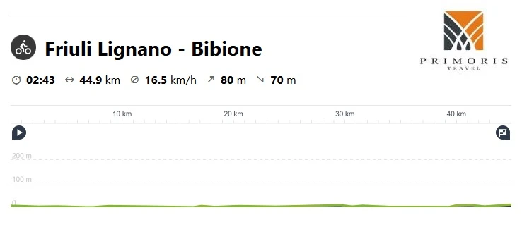 Początek naszej trasy to będzie droga rowerowa wzdłuż miasteczka Lignano Sabbiadoro, przy Lagunie di Marano. Trasa nie sprawi nam dzisiaj żadnych trudności, będziemy się poruszali całkowicie po płaskim terenie, głównie po ścieżkach rowerowych, zarówno asfaltowych jak i szutrowych. Po chwili odbijemy od brzegu i pojedziemy na północ, aby wjechać do regionu Veneto.