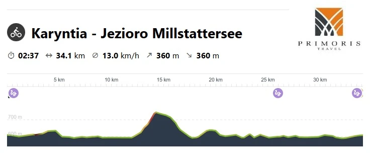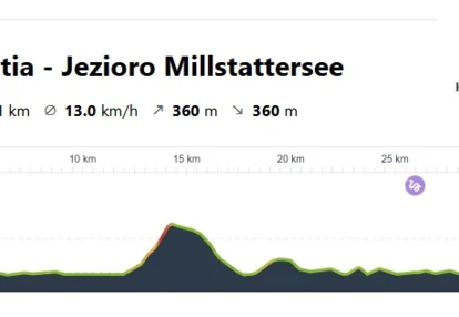 Kolejny odcinek trasy prowadzi znów w kierunku jeziora - w stronę Seeboden, skąd kontynuujemy jazdę wzdłuż Millstätter See aż do Döbriach. Łącznie będzie to ok. 20-kilometrowy odcinek, prowadzący w większości szutrowymi drogami. Ten ciekawy szlak odkryje przed nami piękno jeziora, które będzie nam towarzyszyć przez większość trasy. Po opuszczeniu brzegu jeziora udamy się do hotelu rowerami.