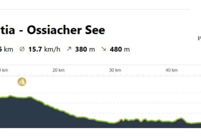 Początkowy odcinek trasy prowadzi nas do miejscowości Radenthein, gdzie odbijamy na południowy - wschód w kierunku Villach. Pierwszy etap to 10 kilometrowy podjazd o lekkim nachyleniu, więc nie powinien nam sprawić trudności. Następnie zaczynamy głównie zjazd w kierunku jeziora. Po drodze miniemy jeszcze dwa mniejsze jeziora, Feldsee oraz Afritzer See.