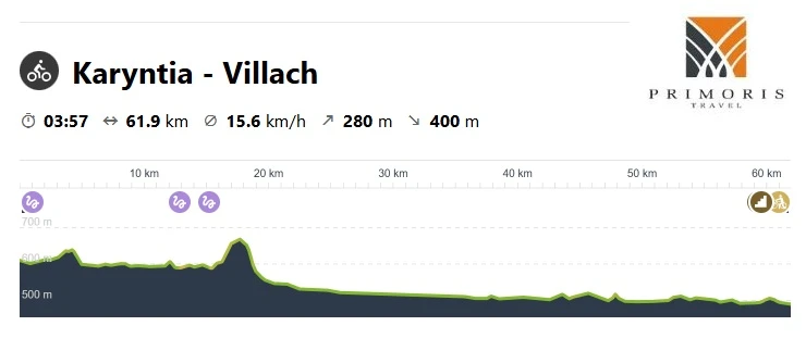Po przejechaniu ok. 30-kilometrowego fragmentu trasy na odcinku Drauradweg docieramy do Villach, gdzie zatrzymamy się na starym mieście na zasłużony odpoczynek. Po krótkiej przerwie i spacerze po tym urokliwym miasteczku wrócimy rowerami na parking, gdzie zapakujemy rowery i wrócimy do hotelu busem.