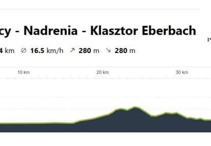 Stąd rozpoczniemy niewielki podjazd, około 6 kilometrów o średnim nachyleniu 2-3 procent. Ze względu na delikatne nachylenie podjazd nie powinien sprawić problemów. Spokojnym tempem dojedziemy do jednego z ciekawszych miejsc regionu, a zarazem celu naszej dzisiejszej wyprawy - Klasztoru Eberbach. Klasztor pochodzący z XII wieku jest obecnie istotnym punktem na mapie turystycznej regionu. Podczas naszego pobytu będziemy mogli poznać historię i styl życia zakonników kiedyś i dziś. Chętni mogą skorzystać z degustacji wina produkowanego w okolicy. Po zwiedzaniu i degustacji będzie można wrócić busem do hotelu. Chętnym proponujemy powrót rowerem.