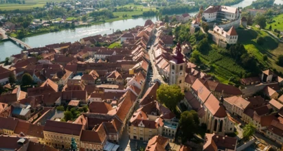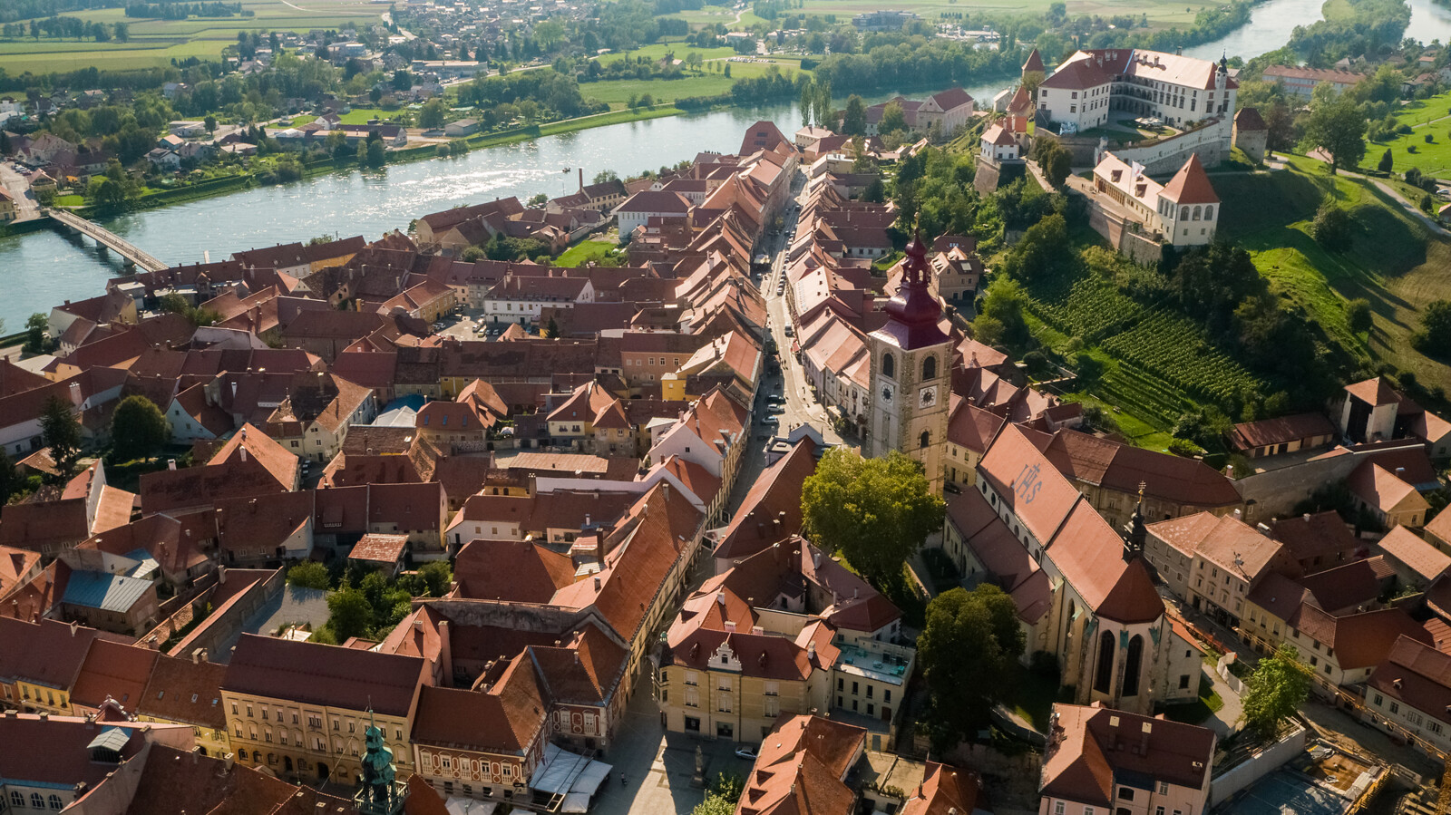 Po blisko 40 kilometrach dotrzemy do naszego głównego celu jakim jest miasto Ptuj. Jest to najstarsze miasto Słowenii, położone u stóp wzgórza zamkowego. Ptuj w pełni oddaje klimat średniowiecznego miasta, a spacerując po jego uliczkach można również poczuć historię czasów starożytnych. Nad miastem wznosi się jeden z najpiękniejszych zamków w Słowenii, z którego rozpościera się widok na całe średniowieczne miasto. Ptuj może poszczycić się również najstarszą piwniczką winiarską w Słowenii i najstarszymi słoweńskimi winami. Winiarskie tradycje sięgają jeszcze czasów rzymskich, kiedy to ówcześni mieszkańcy miasta wzbogaciła się na handlu właśnie winem.