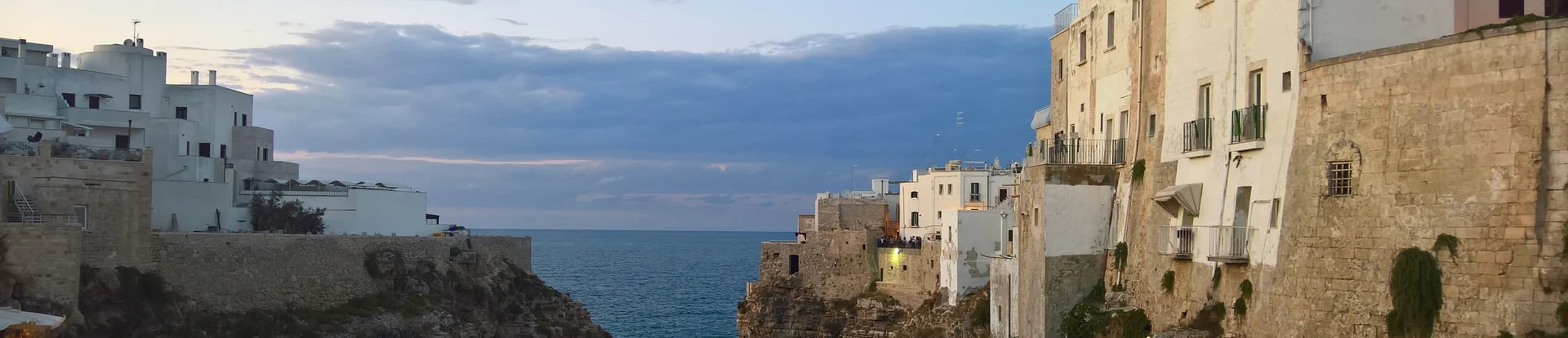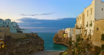 Po dotarciu na miejsce naszym oczom ukaże się maleńka, romantyczna plaża, jakby schowana przed światem pomiędzy dwoma klifami, a na nich białe domy, których kolor pięknie współgra z błękitem Adriatyku… brzmi ciekawie, prawda? Mowa tu o jednej z najpiękniejszych plaż Apulii, Lama Monachile, która znajduje się w urokliwym Polignano a Mare. Polignano a Mare jest niewielkim miasteczkiem wybudowanym na skalistym wybrzeżu Adriatyku. Typowa, ciasna zabudowa, wąskie uliczki i przepiękne widoki sprawiają, że miasteczko, mimo tego, że niewielkie, jest lubianą i cenioną destynacją wśród turystów. Mnóstwo tu także jaskiń, czy grot skalnych widocznych wyłącznie od strony morza. W jednej z nich znajduje się ekskluzywna restauracja, serwująca dania na najwyższym poziomie. Natomiast miłośników włoskiej piosenki i festiwalu w San Remo zapraszamy na wspólne odśpiewanie „Nel blu, dipinto di blu (Volare)”, pod tutejszym pomnikiem autora piosenki, Domenico Modugno.