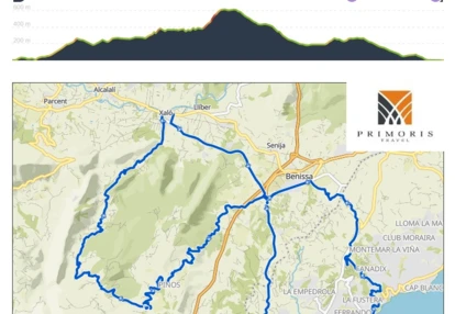 Po drodze czekają liczne, strome podjazdy, które testują wytrzymałość i kondycję. Z każdym kilometrem krajobraz staje się coraz bardziej górzysty i dziki, dzięki czemu możemy cieszyć się majestatycznymi widokami na Sierra de Bernia. W końcu, po pokonaniu kilku wymagających podjazdów, trasa dociera do Bernii – niewielkiej wioski malowniczo położonej na zboczach góry.